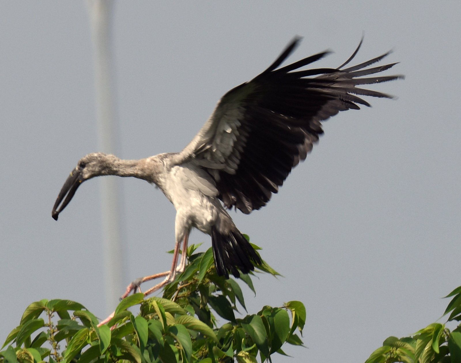 Adults are more greyish white with glossy black wings whilst the juveniles and sub-adults are greyish. They are know for their unique gap at its bill which is less prominent in juveiles. Its main diet are snails, including the introduced and invasive golden apple snails found all over paddy field and waterways.