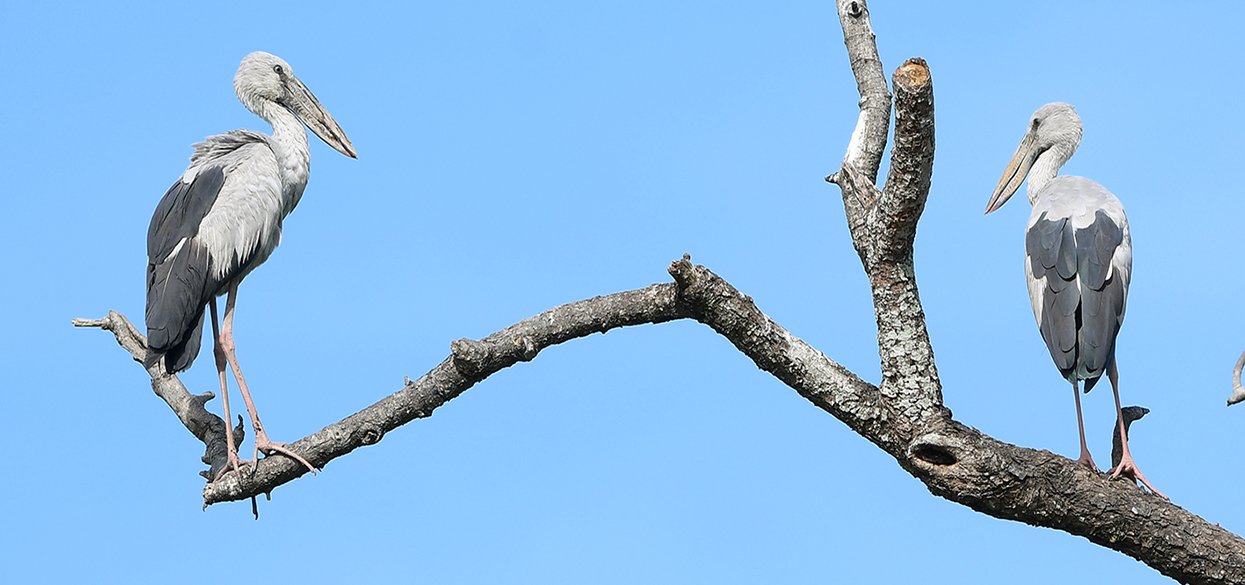 A fairly large waterbird under the stork family, a recent (about 15 years ago) natural expansion of its range from Thailand to Malaysia, for resaons not conclusively proven, including flood in Thailand, their food resources, which is mainly snails were wipe out.