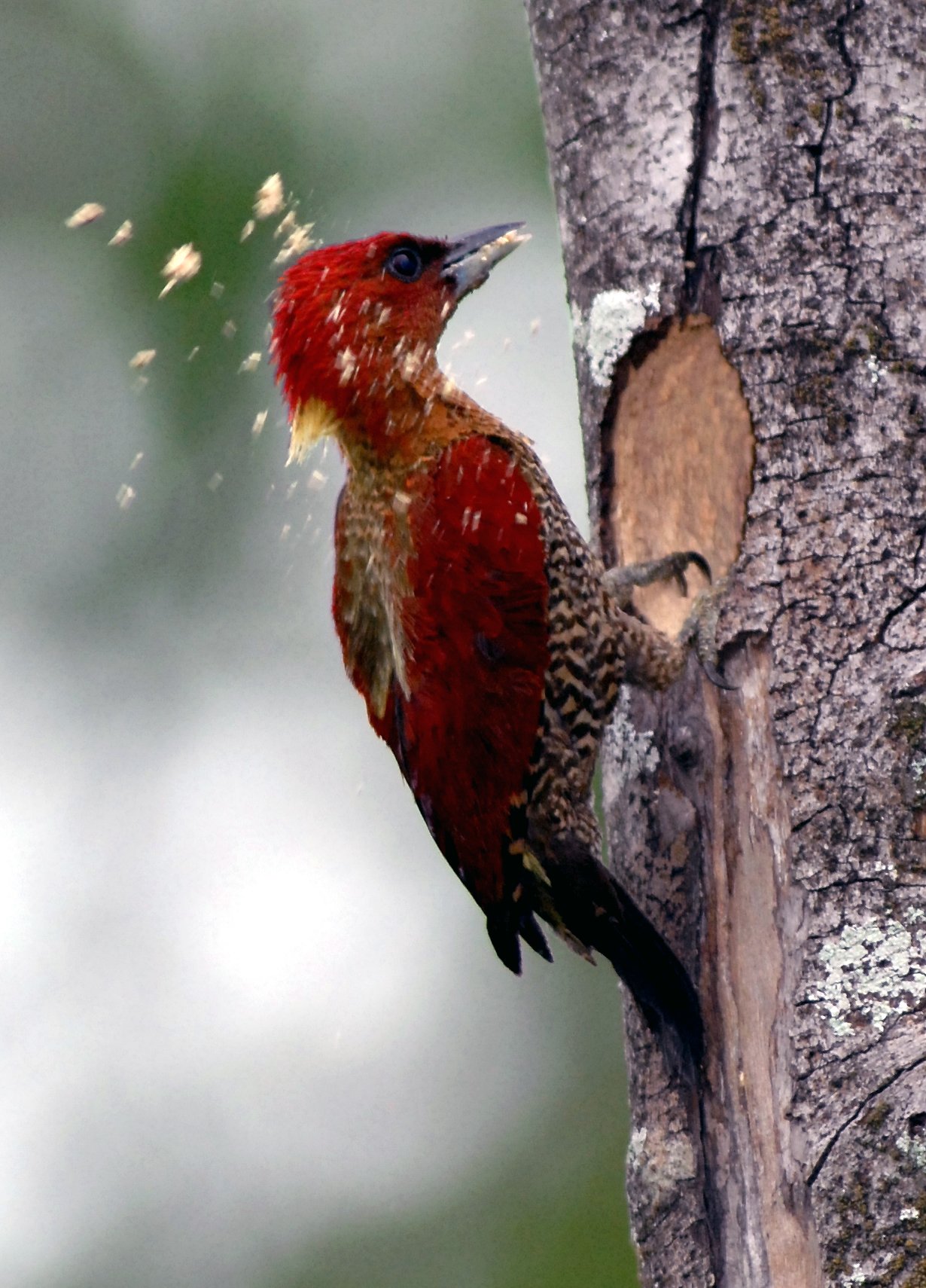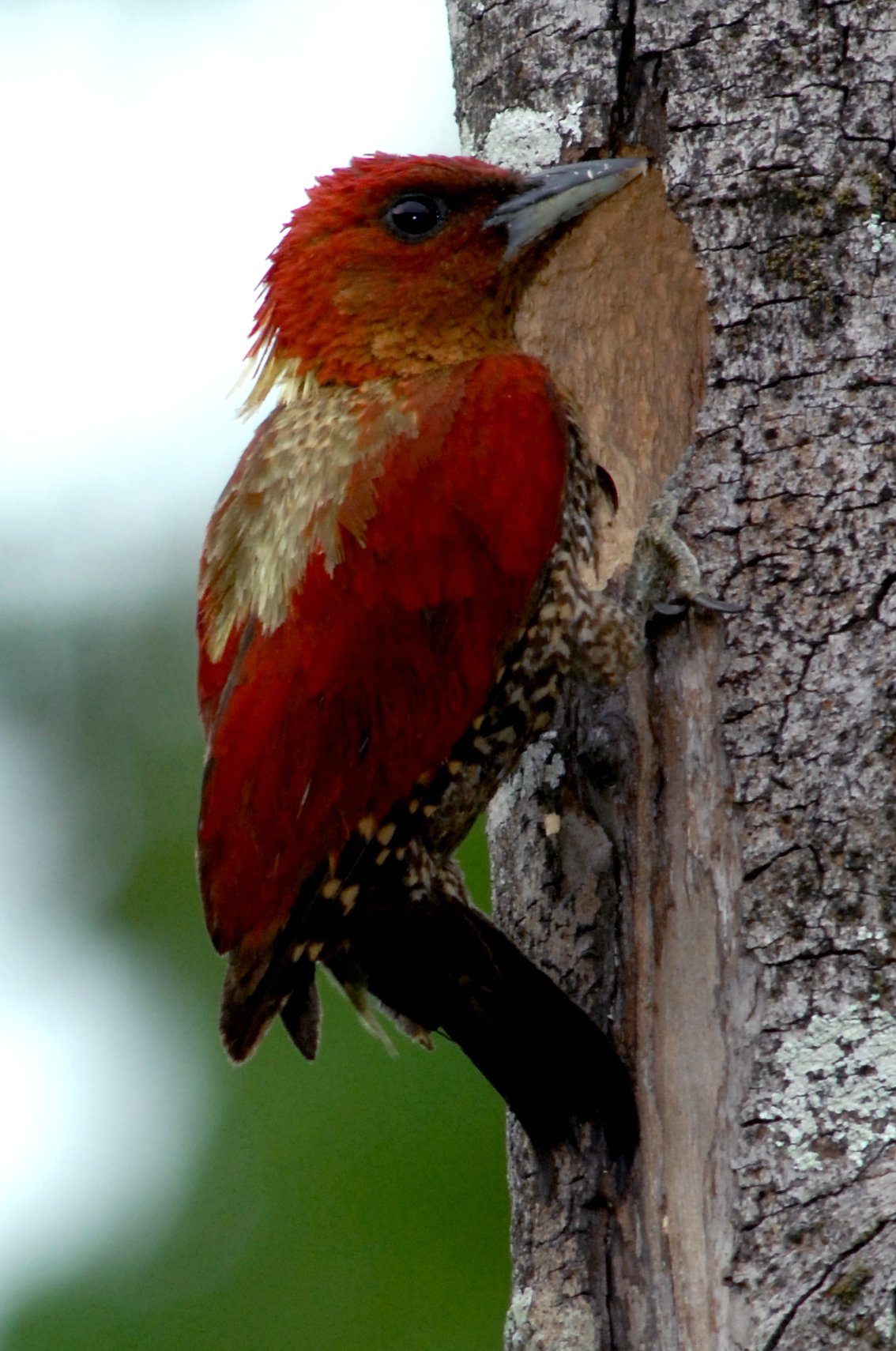 红翅绿背啄木鸟