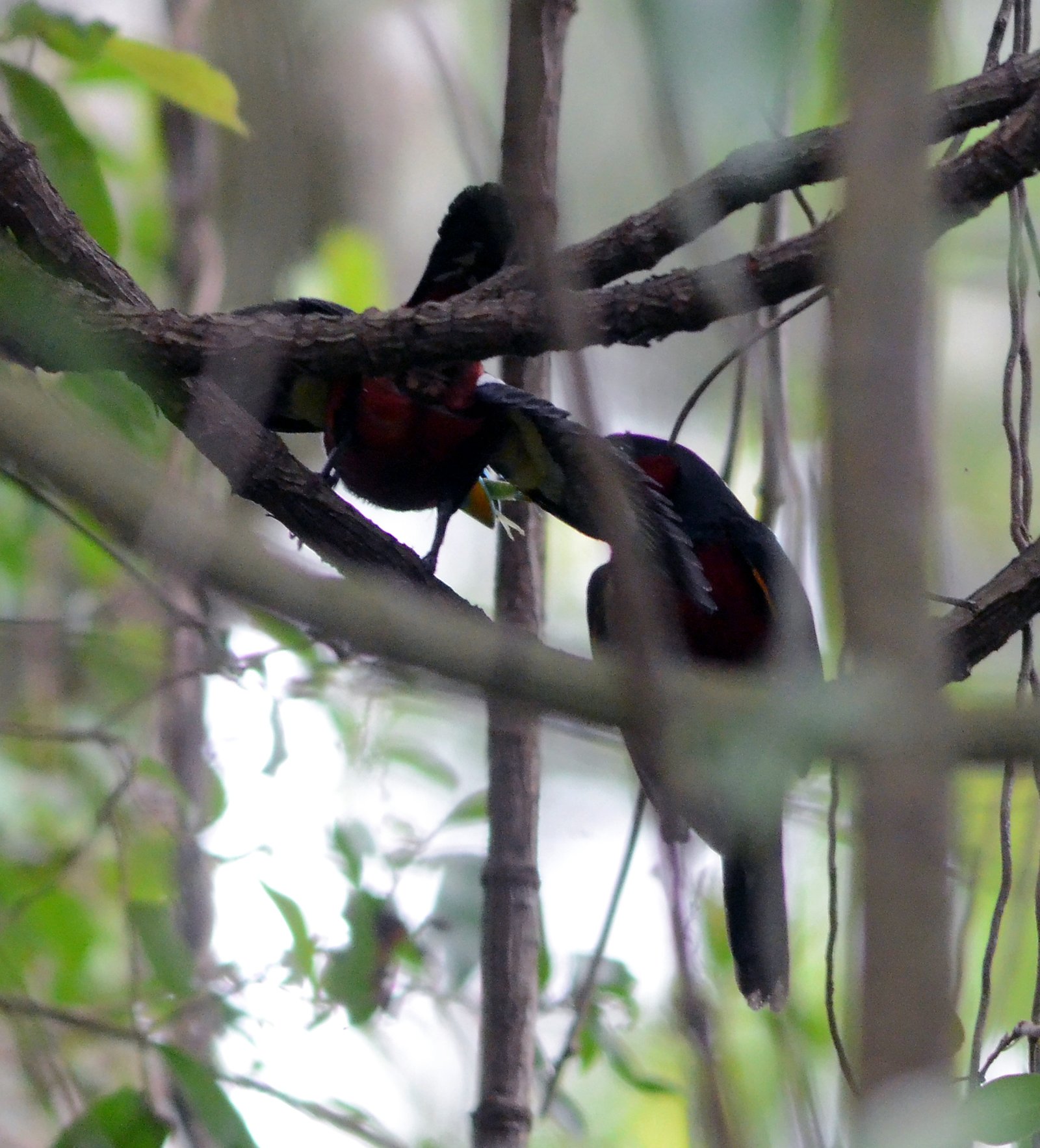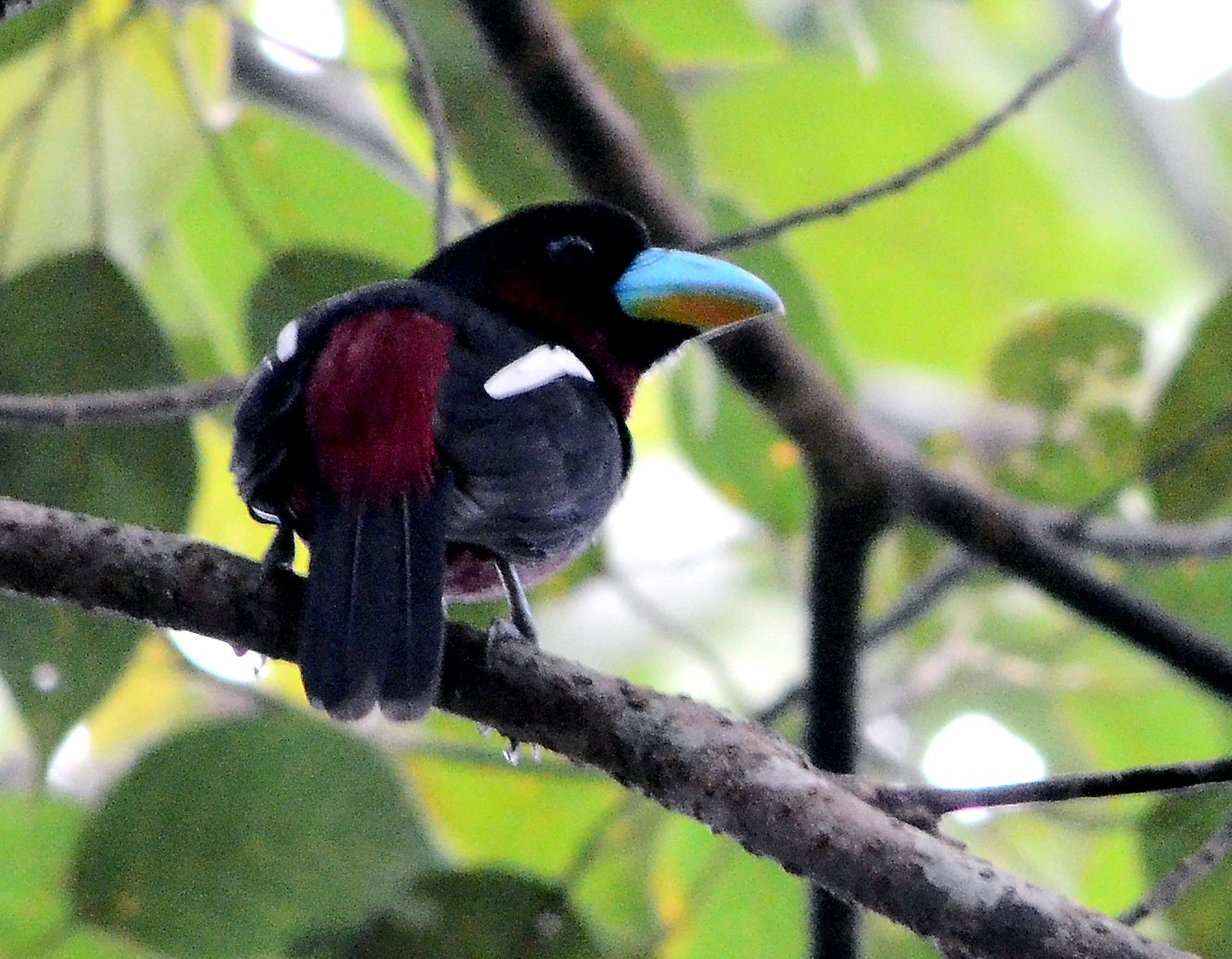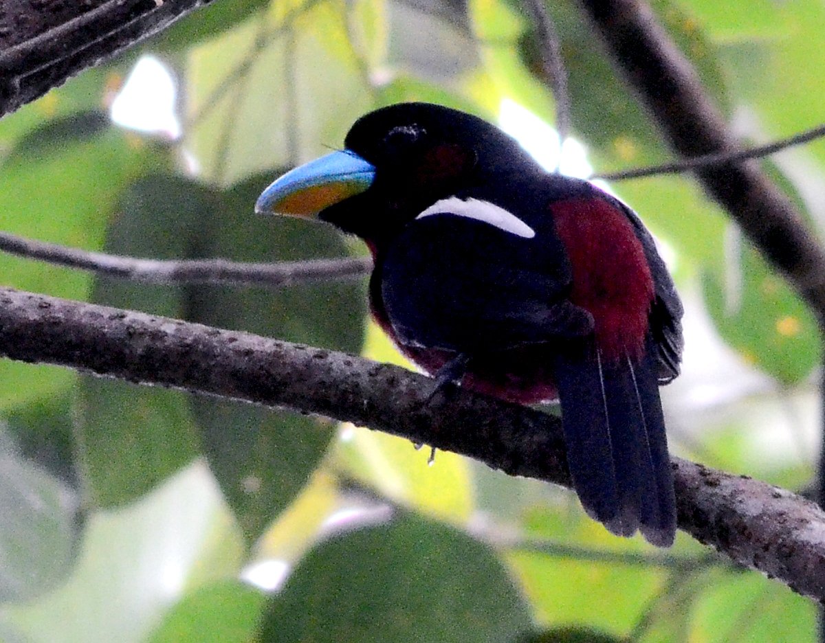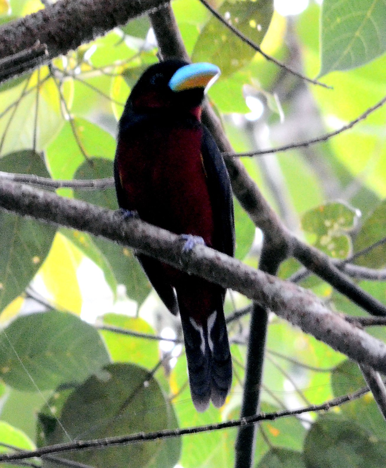 This broadbill is known for its loud, harsh, and often, accelerating calls, a series of high-pitched coos that increase in speed and pitch, turning into loud, harsh, or grating whistles quite unlike the calls of other broadbills.