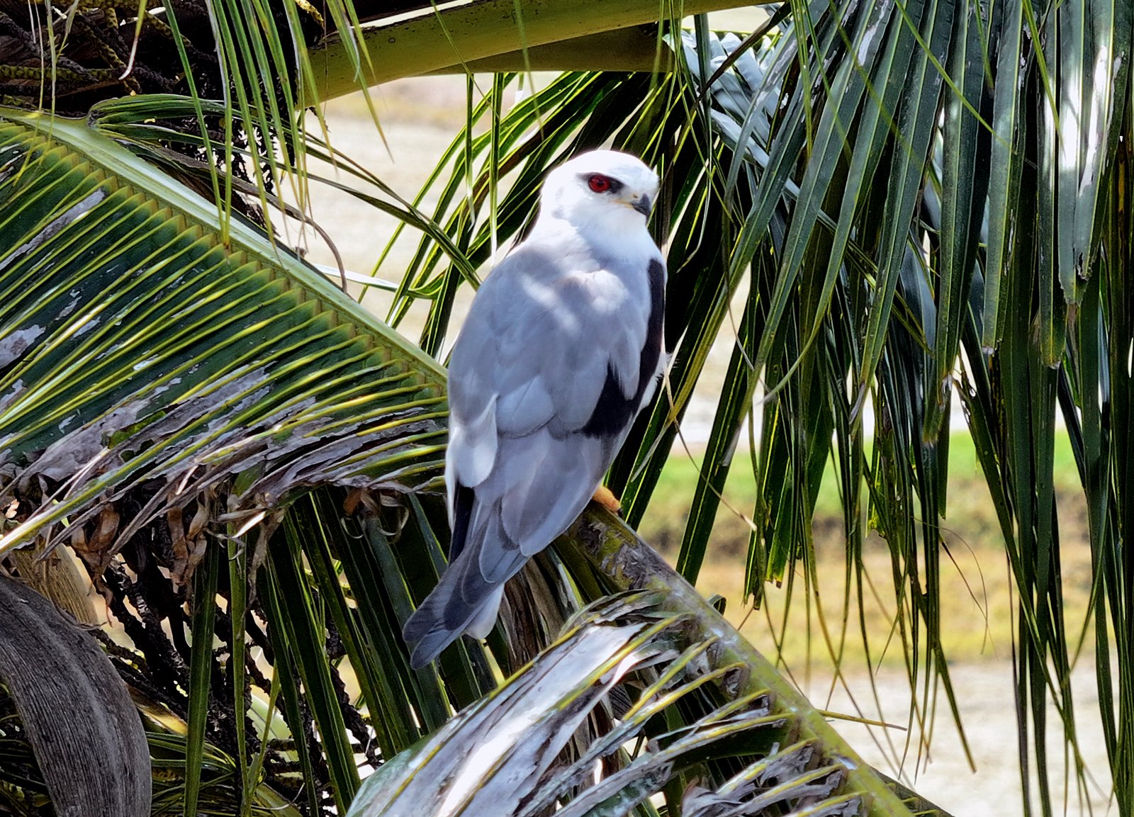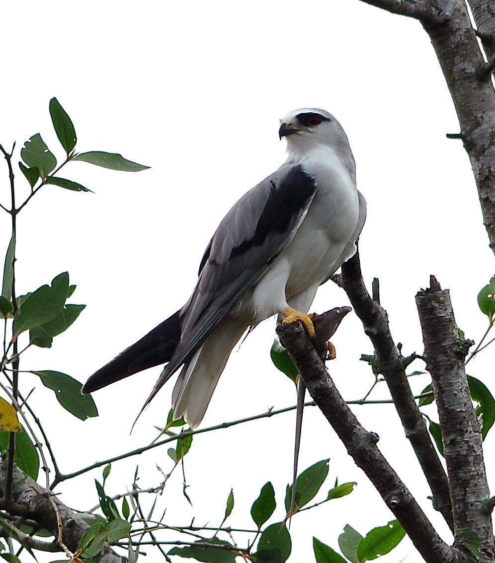 A small to medium-sized raptor, a type of “Kite” smaller than the Brahminy Kite but similar in size to the Crested Goshawak, with white, gray, and black plumage, known for its striking red eyes. It is fairly unmistakable and fairly common over suitable habitat like open space and fields, marshland and wetland. Its preferred prey is rats and mice. It hunts by hovering, and it will prey on rodents, reptiles, and waterbirds; it is more active at dawn and dusk.