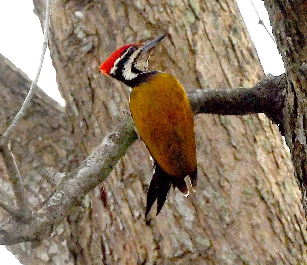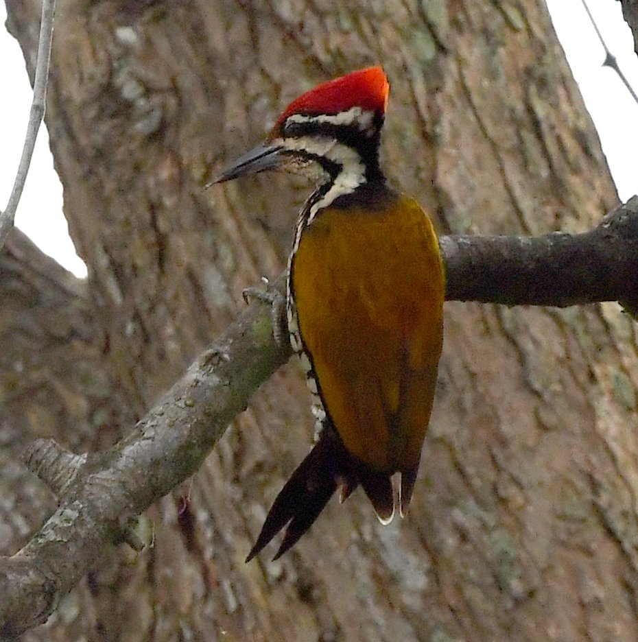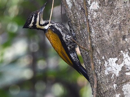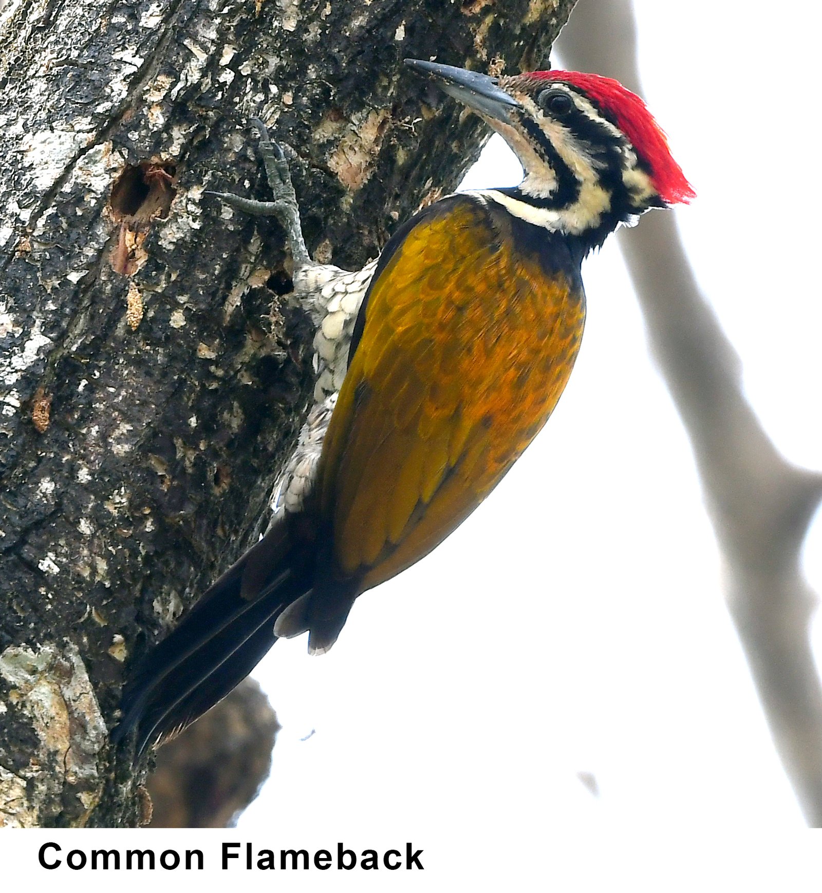 The Common Flameback (Dinopium javanense) is a widespread, golden-backed woodpecker found across tropical Asia, known for its distinctive triking appearance and loud calls. Also called the Common Goldenback, is a medium-sized woodpecker (28-30 cm). Males and females differ; as males have a bright red crest while females have a black crest with white streaks.