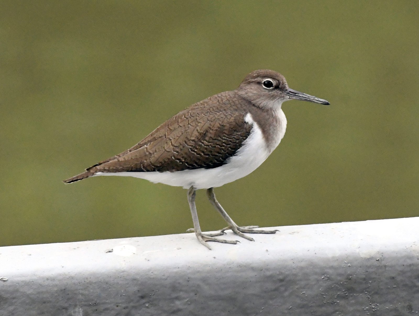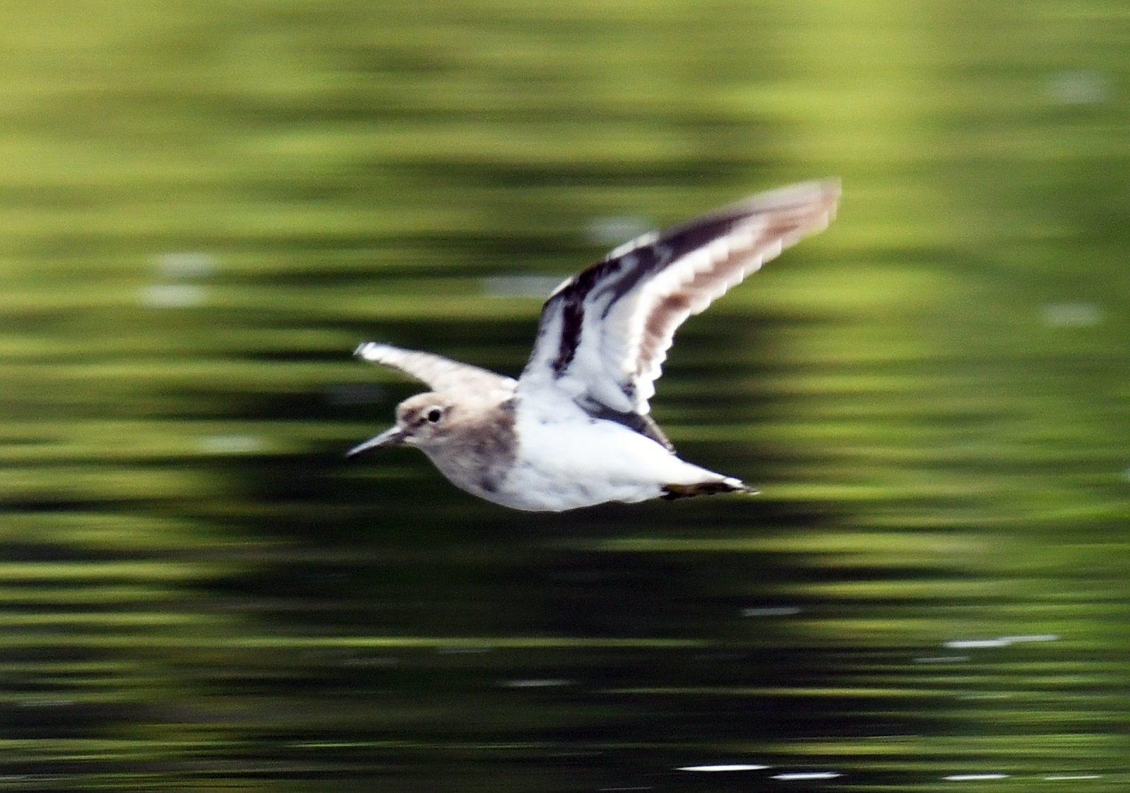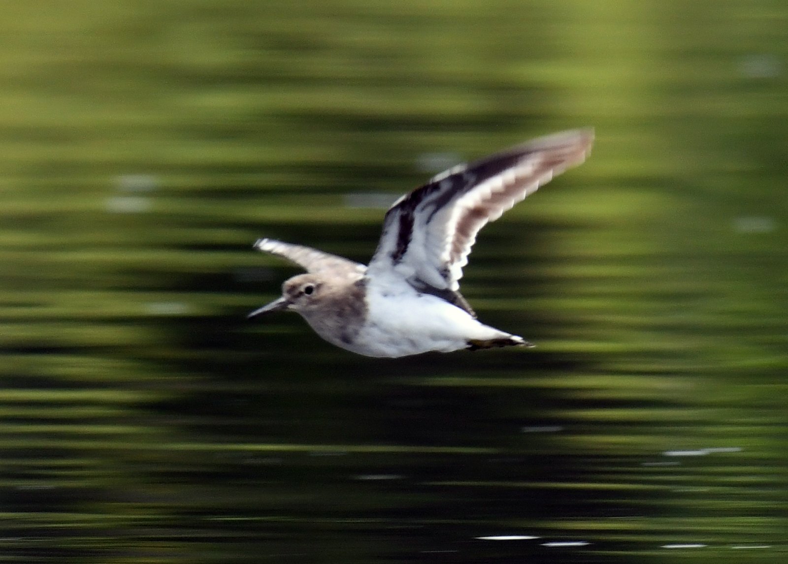 A widespread migratory small shorebird known for its distinctive tail-bobbing, found near freshwater and coastal habitat across Europe, Asia, Africa, and Australia but not the Americas. A small, brown-grey wader with a white belly, white wing bars, and dark legs and flying off with a stiff-winged flight low over water and often giving off a characteristic and distinctive, high-pitched, ringing “swee-wee-wee” or “pi-wi-we” three-note call sometimes giving a shorter single “sweet” note if just landing.
