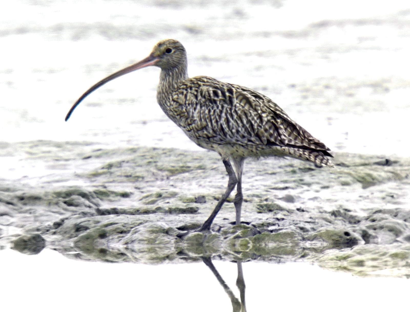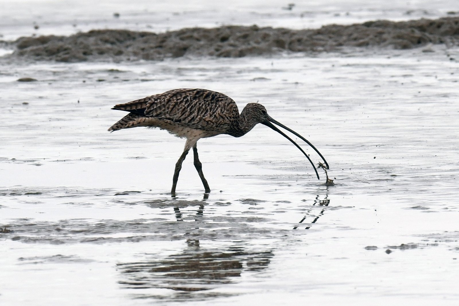 The Far Eastern Curlew is a critically endangered migratory shorebird facing steep declines, with projects focusing on its conservation across the East Asian-Australasian Flyway. It is the largest shorebird (but not to be confused with waterbirds) in the world. With a long decurved bill, long legs, mostly brown, brown underwings barred brown, buffy rump, mottled plumage. It is a shy bird, when threathened or flying off it will give a loud “curlew” call, hence its name.