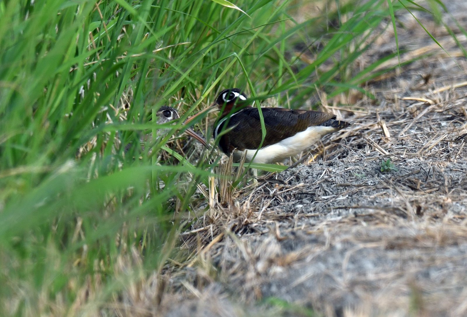 The Greater Painted Snipe has a vast range across the Old World, inhabiting tropical and subtropical wetlands from Africa and Madagascar, across the Indian subcontinent, through Southeast Asia, to southern China, southern Japan. It is well known for its stunning plumages, especially the brighter females which are vibrant with reddish-brown heads, green-tinged backs, and white underparts wheareas the duller males are cryptically colored brown with orange/tan spots.