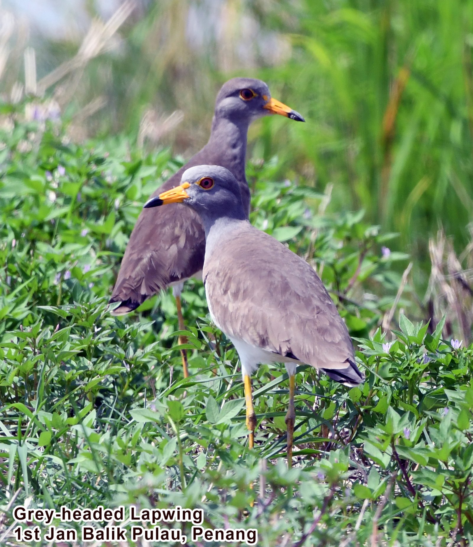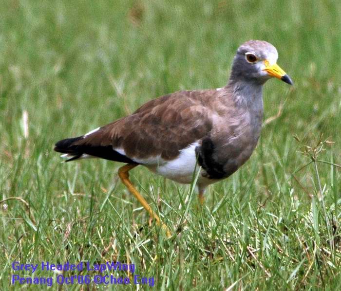 The Grey-headed Lapwing is a migratory shorebird breeding in East Asia (China, Japan) and wintering in Southeast Asia including West Malaysia, favouring wet, marshy, and in particular cultivated rice fields. These gregarious, brownish birds with distinctive gray heads, bright yellow bills, and striking black-and-white wing patterns feed on insects, worms, and crustaceans, giving grating calls, and are common throughout their wintering grounds here.