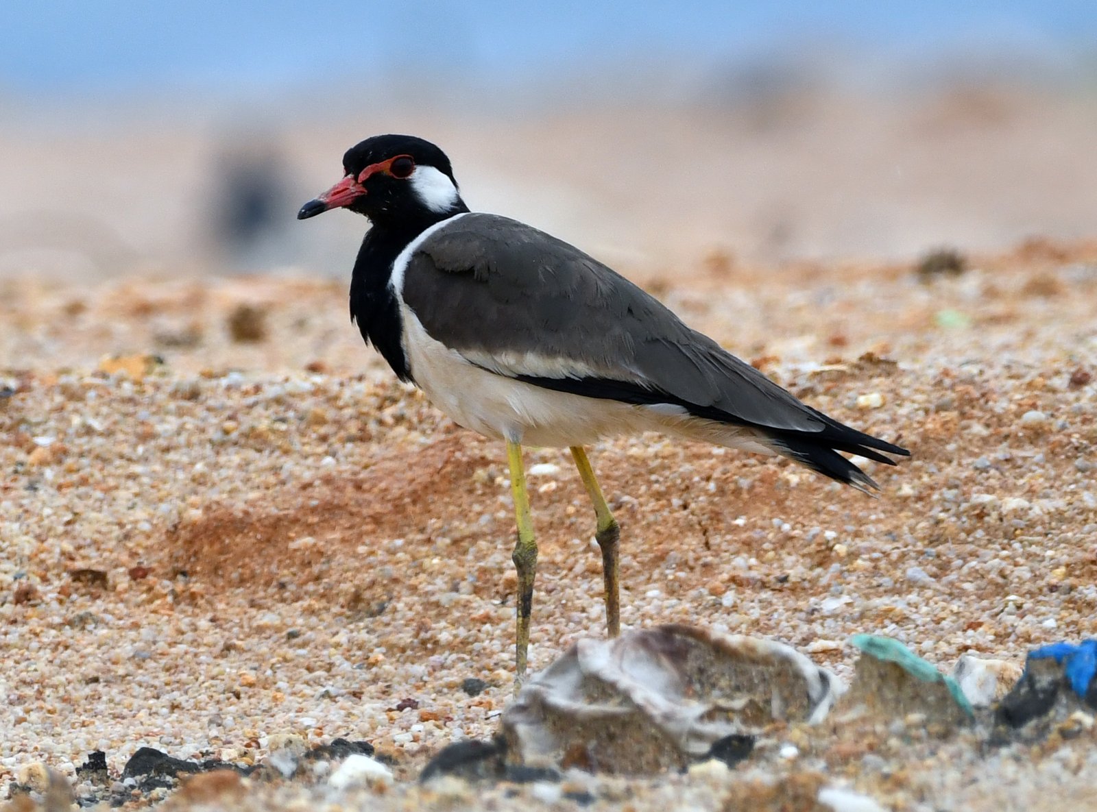 The Red-wattled Lapwing is a distinctive Asian bird known for its loud, persistent alarm calls often described as “did-he-do-it”. It is a ground-dwelling wader common across South and Southeast Asia.