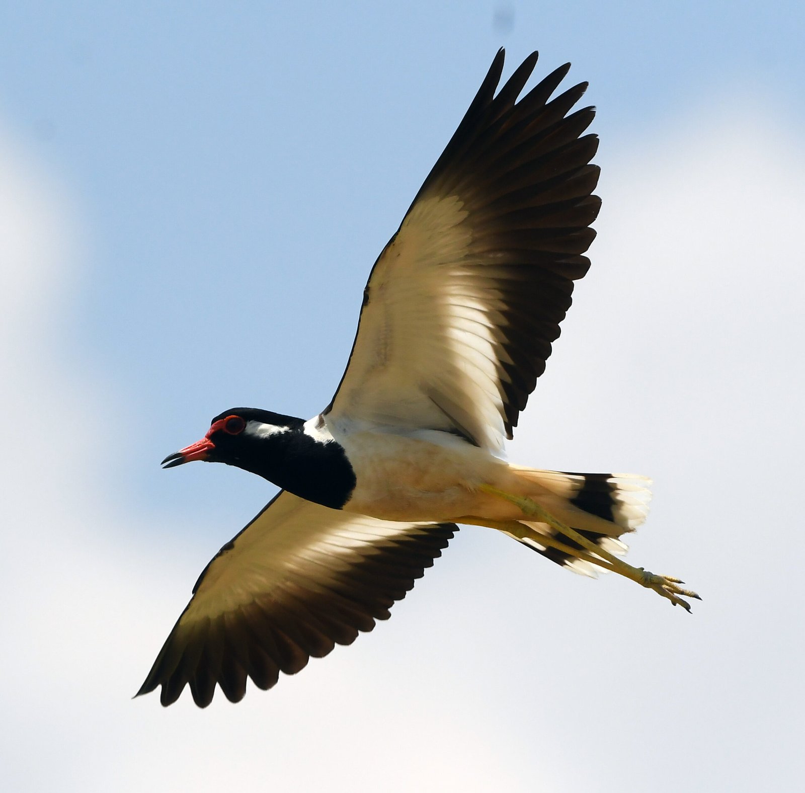 It is well-known for being highly vigilant, the red-wattled lapwing is often the first to detect intruders and raise an alarm, which can be a nuisance to hunters or birders or photographers but beneficial to other wildlife. They are fiercely protective parents and will fly around, diving at potential predators near their ground nests, which always consist of four eggs, no more, no less. The bird’s diet mainly consists of insects, snails, and other invertebrates, which it forages from the ground.