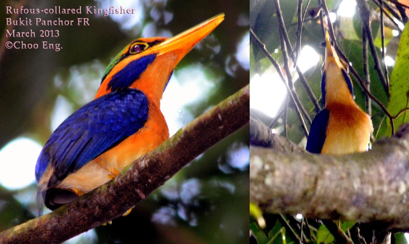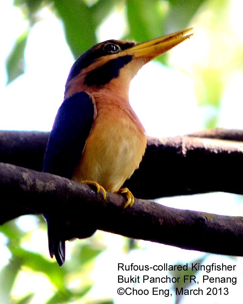 The Rufous-collared Kingfisher ranges across Southeast Asian lowland and low-montane forests in countries like Malaysia, Indonesia (Sumatra), Thailand, Myanmar, and Brunei, inhabiting shaded streams, jungle rivers, and moist forest areas, being somewhat elusive but not that rare, especially if you learned its call. It is one of the two “forest kingfishers” of West Malaysia tropical forest, the other being the Banded Kingfisher, with one of their calls having some similarity.