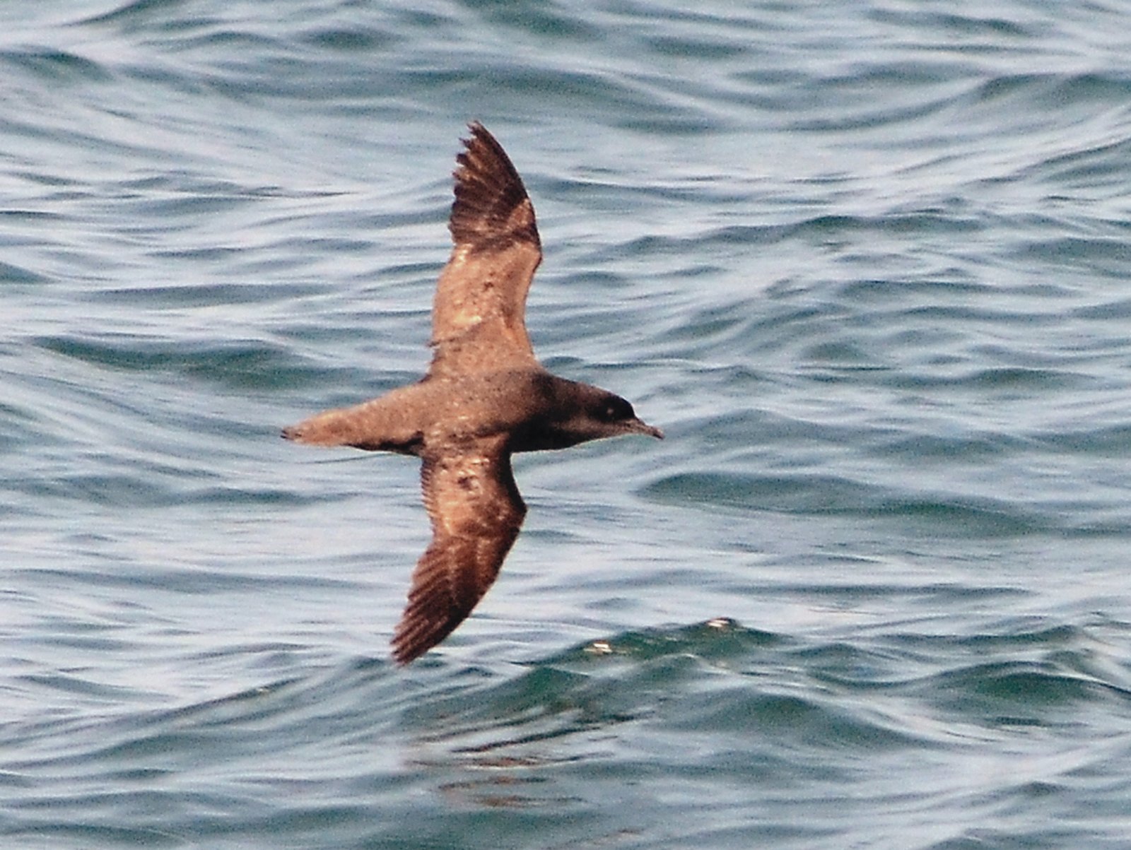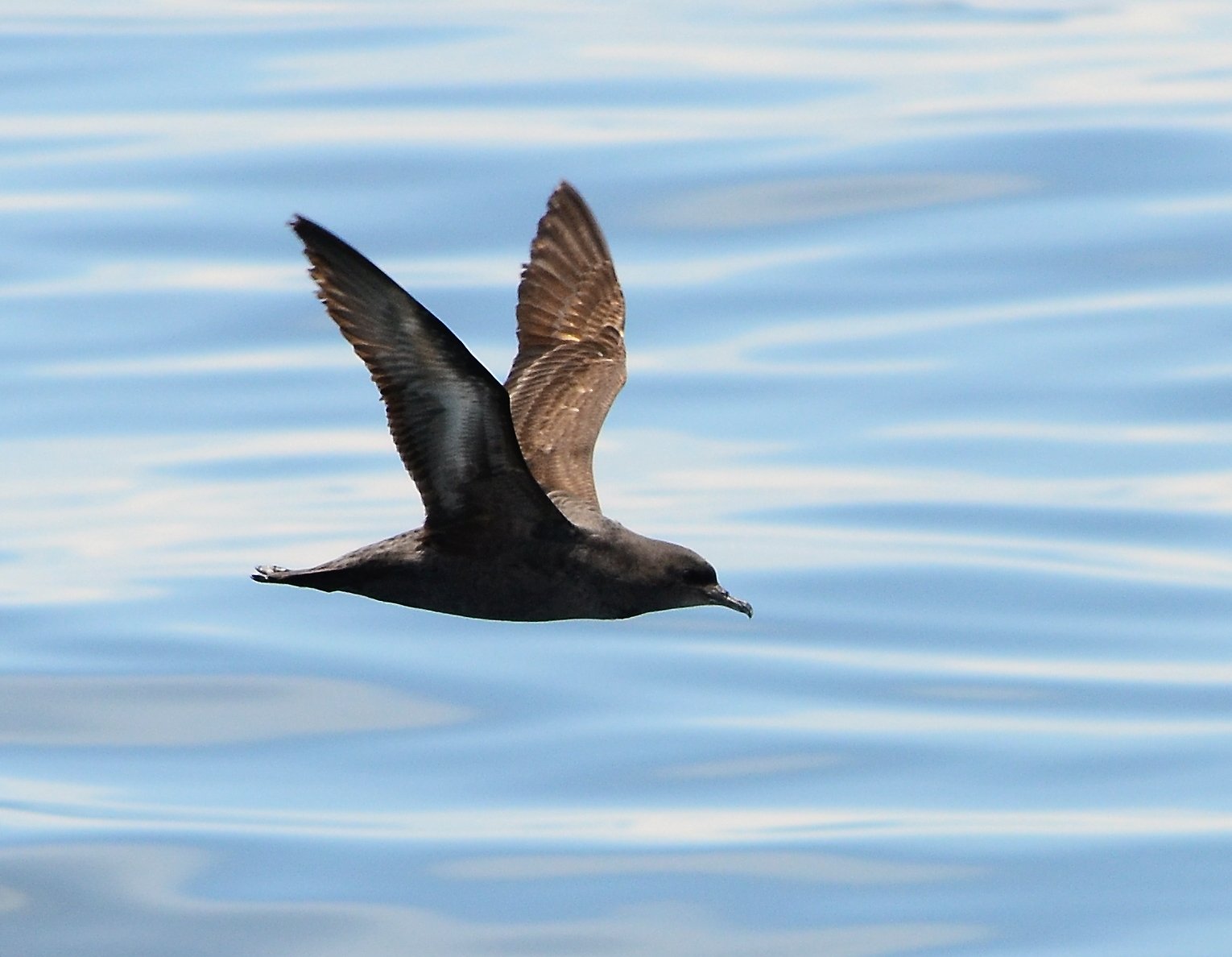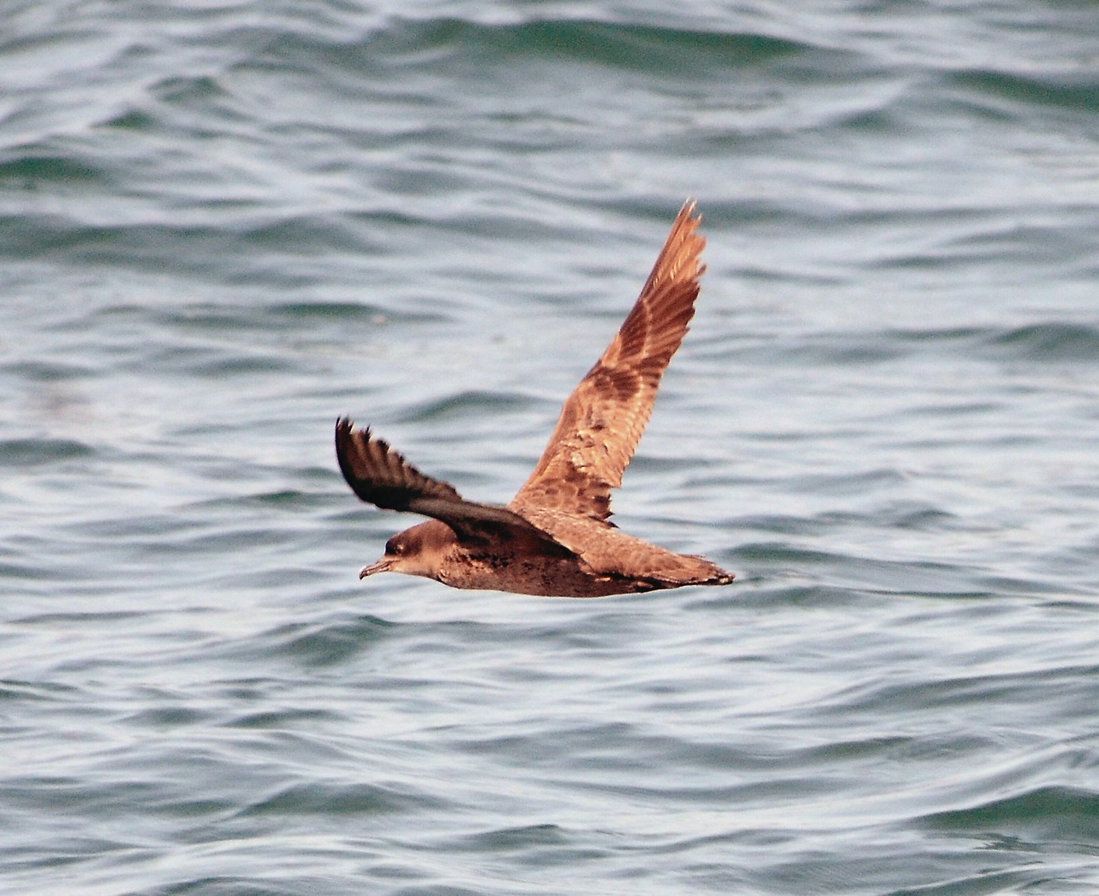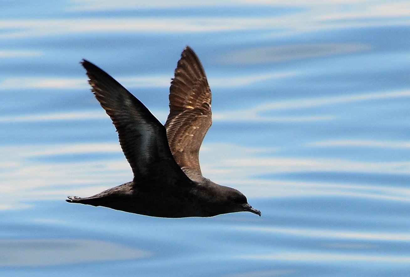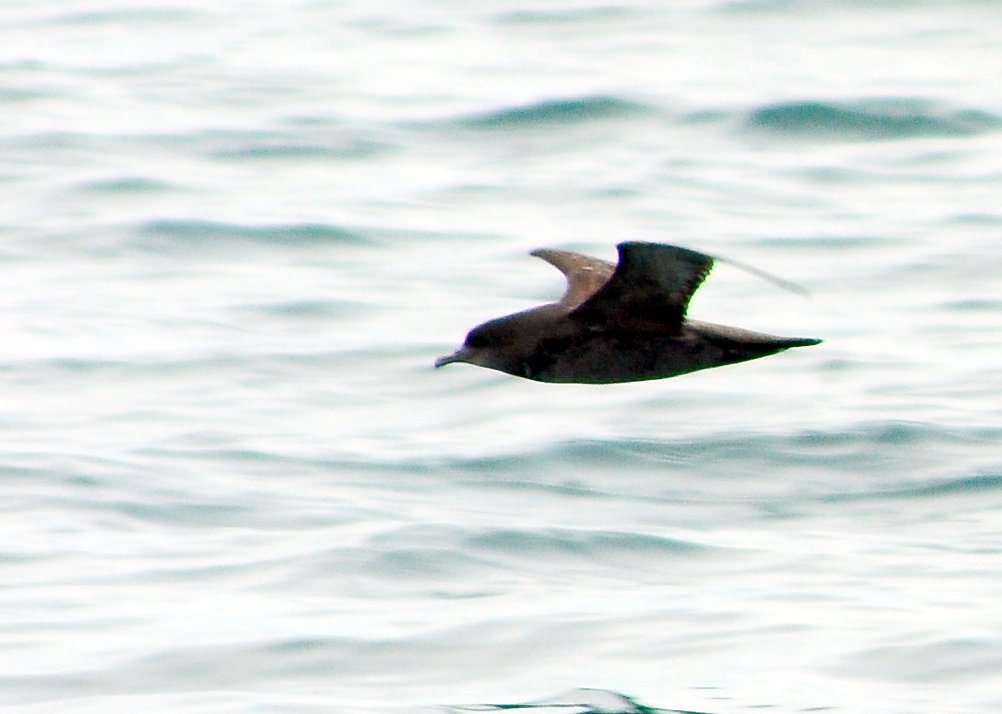 It is a medium-sized, dark brown shearwater with narrow, crooked wings that produce quick wingbeats, known for rapid, bouncy wingbeats, contrasting with its long, efficient gliding style at sea.
