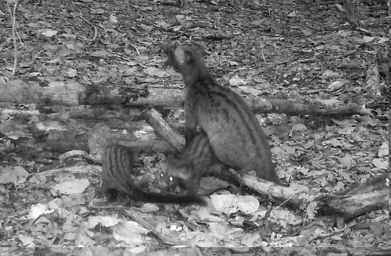 They are good climbers but will also travel and forage for food and prey at ground level. They are secretive and rest or nest in tree holes, between rocks and .They can be seen during dusk or dawn walking along their usual daily trail, like clockwork.