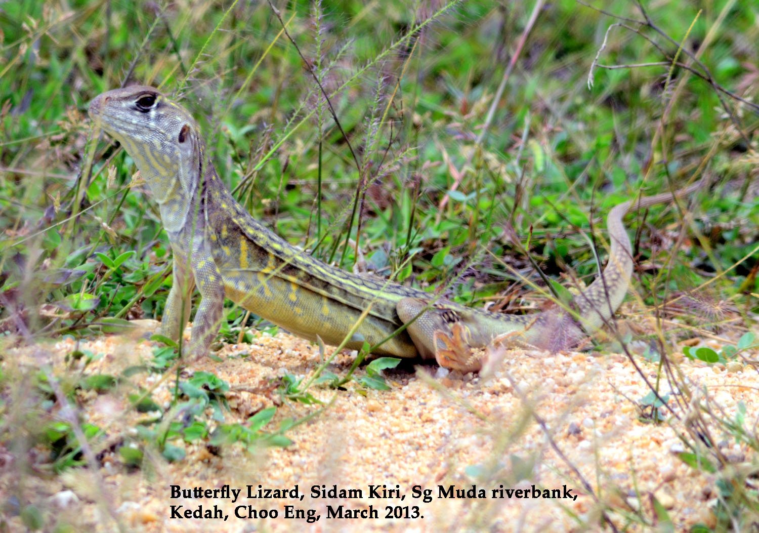 The Malayan (or Malaysian) Butterfly Lizard is a unique, all-female (parthenogenetic) lizard species found in northern Peninsular Malaysia and Southern Thailand, known for its striking flank patterns resembling butterfly wings, inhabiting sandy, open areas like disturbed farmlands and coastlines, and using burrows for refuge. This shy lizard reproduces asexually (cloning) and is closely related to the more widespread Common Butterfly Lizard (Leiolepis belliana), often found basking or darting into sandy burrows when approached.