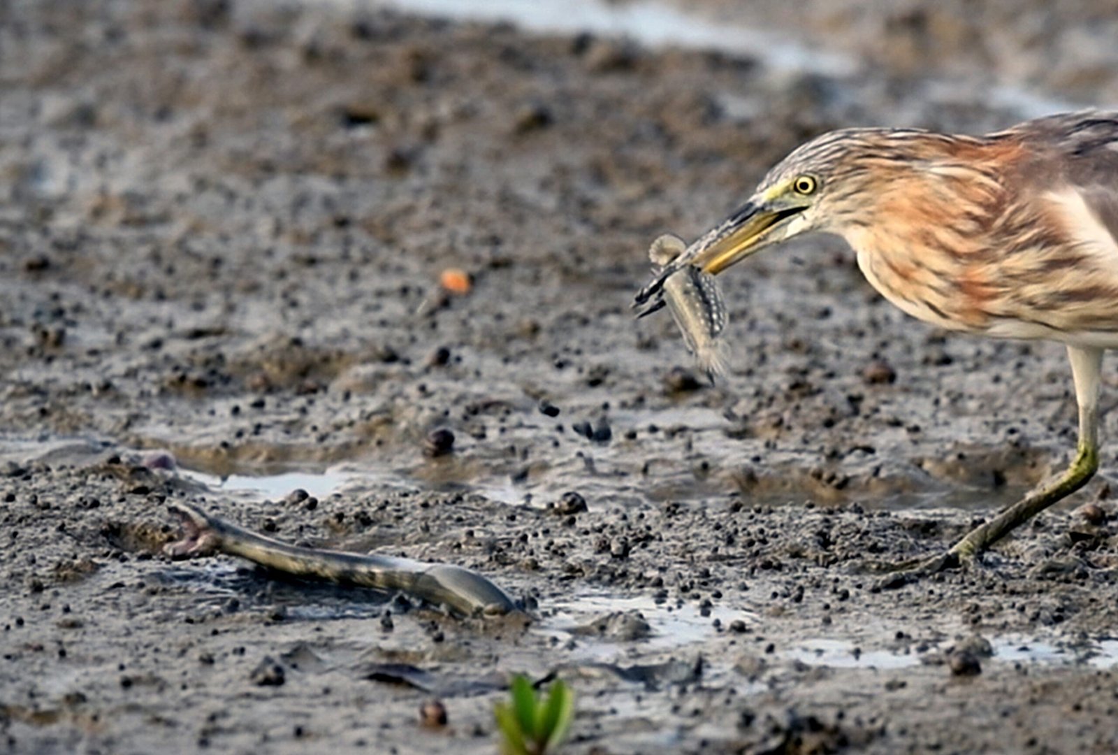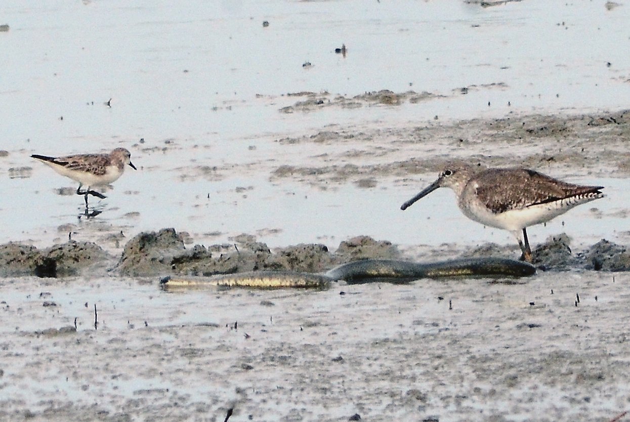 It is very common over all the coastal areas of Seberang Perai, its does “follow the tide” but sometimes get stranded on a receding tide. One of the rather odd observation probably first observed in the Teluk Air Tawar – Kuala Muda IBA is that waterbirds and shorebirds here practise interspecific kleptoparasitism (stealing food from other species) on the dogfaced watersnake, stealing their prey of mudskippers, shrimps, and other small animals and organism that got flush out of the coastal mudflats borrows by the snake.