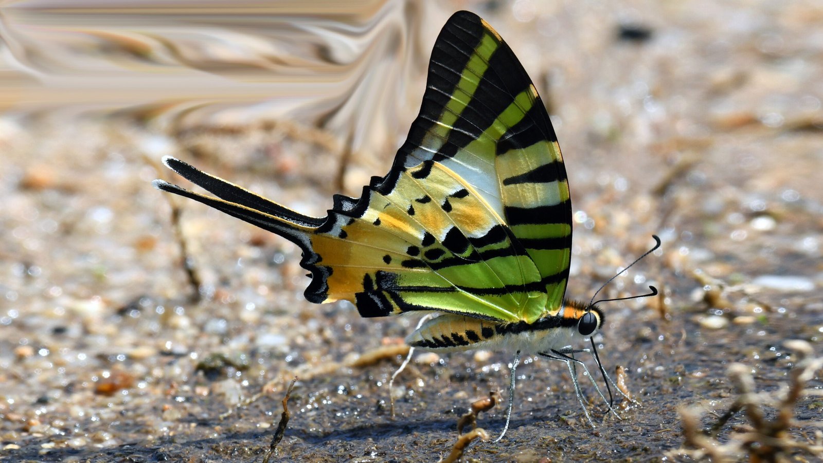The Five-bar Swordtail butterfly is a beautiful swallowtail butterfly known for its green and black stripes and distinctive long “tails” (extensions) on its hindwings, often photographed in South/Southeast Asia.
