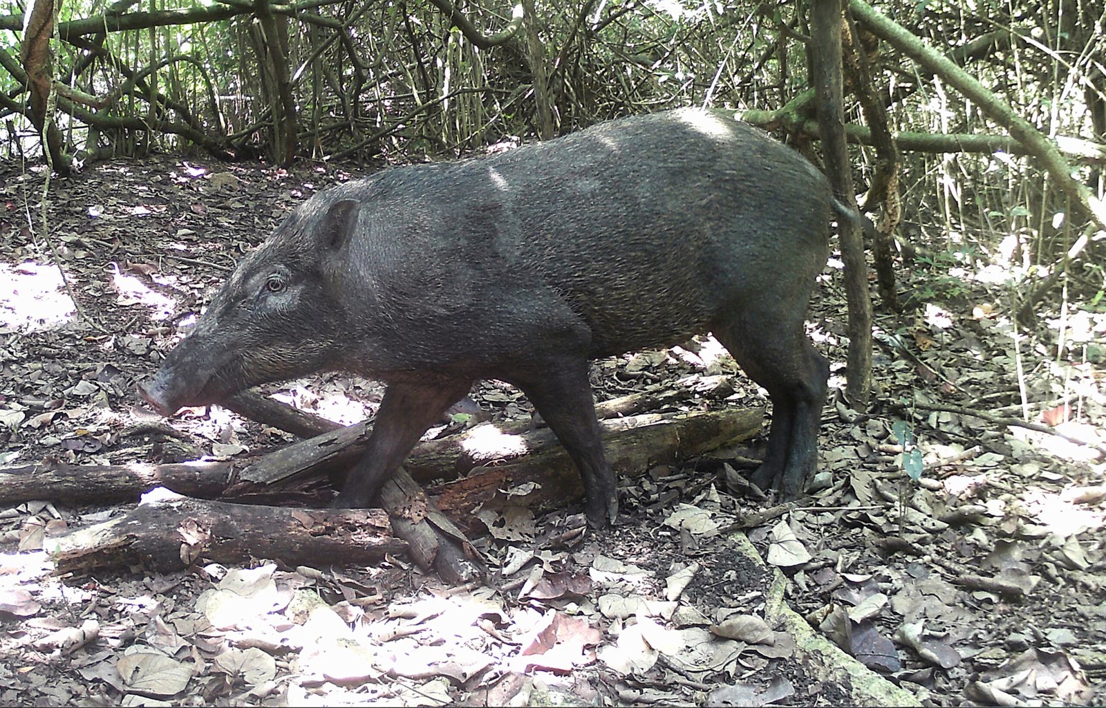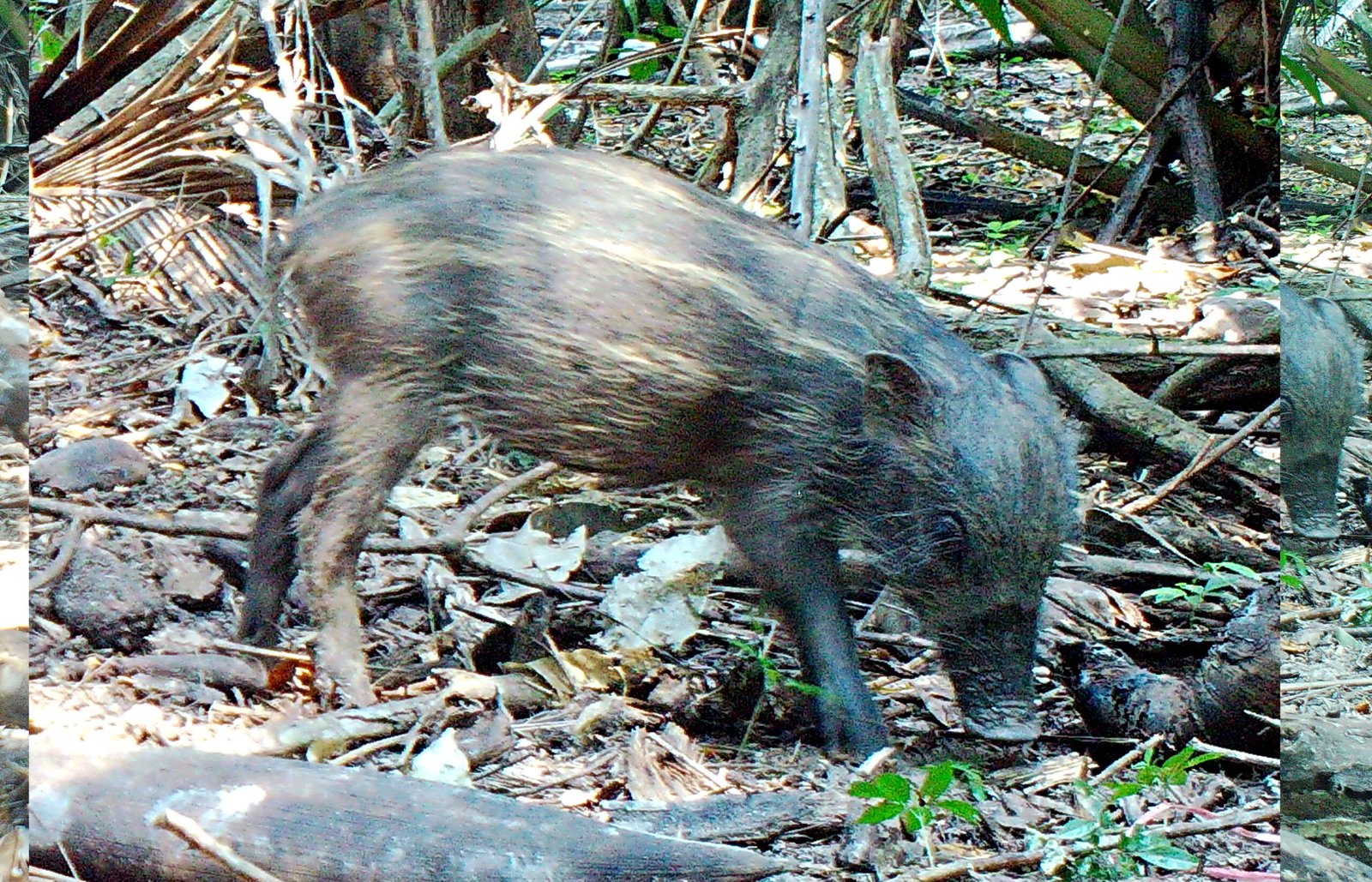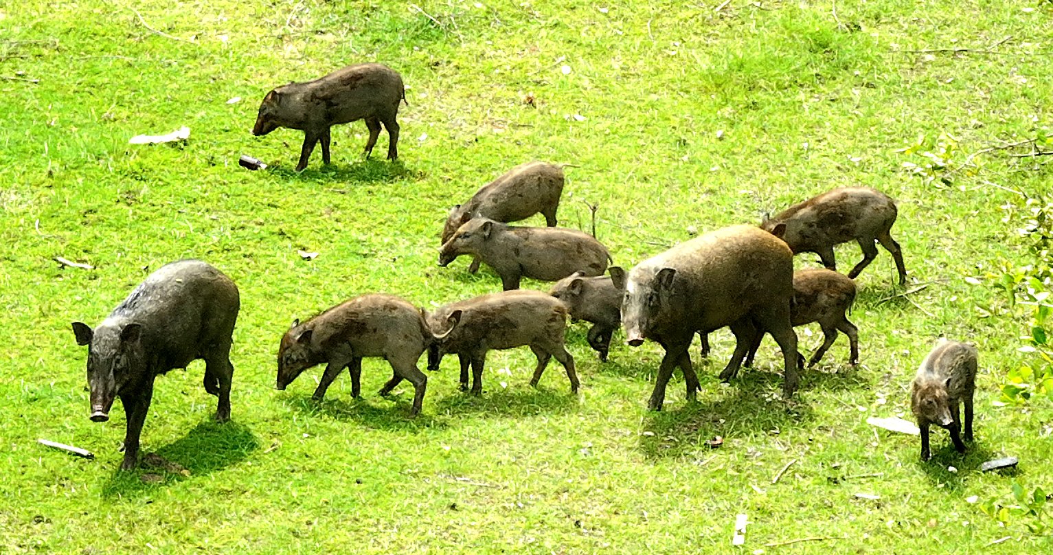 One of the main distiguishing feature from the domestic pig is the black mane on its back. It can be very dangerous when encountred or cornered or when with young. It should be avoided and give them enough space to wander off.